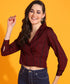 Women's Maroon & Black Full Sleeve Wrap Top with Collar