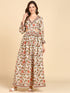 Floral Printed Cream Waist Cut-Out Maxi Dress Dress