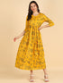 Gold & Green Floral Printed Yellow Dress