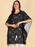 Floral & Owl Eyes Printed Black Kaftan Kurta