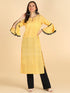 This sunny yellow kurta has a straight style, a printed flower moti. The fabric is made from lightweight cotton for soft and comfortable wear.