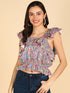 This top is the perfect addition to your summer wardrobe. With a fun and vibrant print, it looks great with denim shorts or trousers. It features a frilled hem and sleeves to add detail to your outfit.