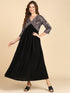 Fall in love with the irresistible charm of Znx Clothing's Black Floral Flared Maxi Dress. This ensemble showcases a delightful blend of contemporary design and classic elegance, with its captivating floral patterns on a bold black backdrop. From its flared cut to the exquisite border details, every aspect of this dress is thoughtfully curated to offer you a perfect combination of comfort and style. Flirt with the romance of flowers and the drama of a maxi length with this dreamy dress. Whether it's a festive occasion or an ordinary day made extraordinary, this dress will make you the center of attention.