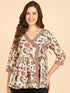Floral Printed Angrakha Style Cream Top