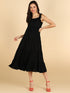 Solid Black Trierd Dress With Muti Way Tie Solder Stripes