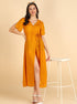 This beautiful yellow and white front-slit dress features a flattering silhouette and matching belt for an adorable and comfortable look.
