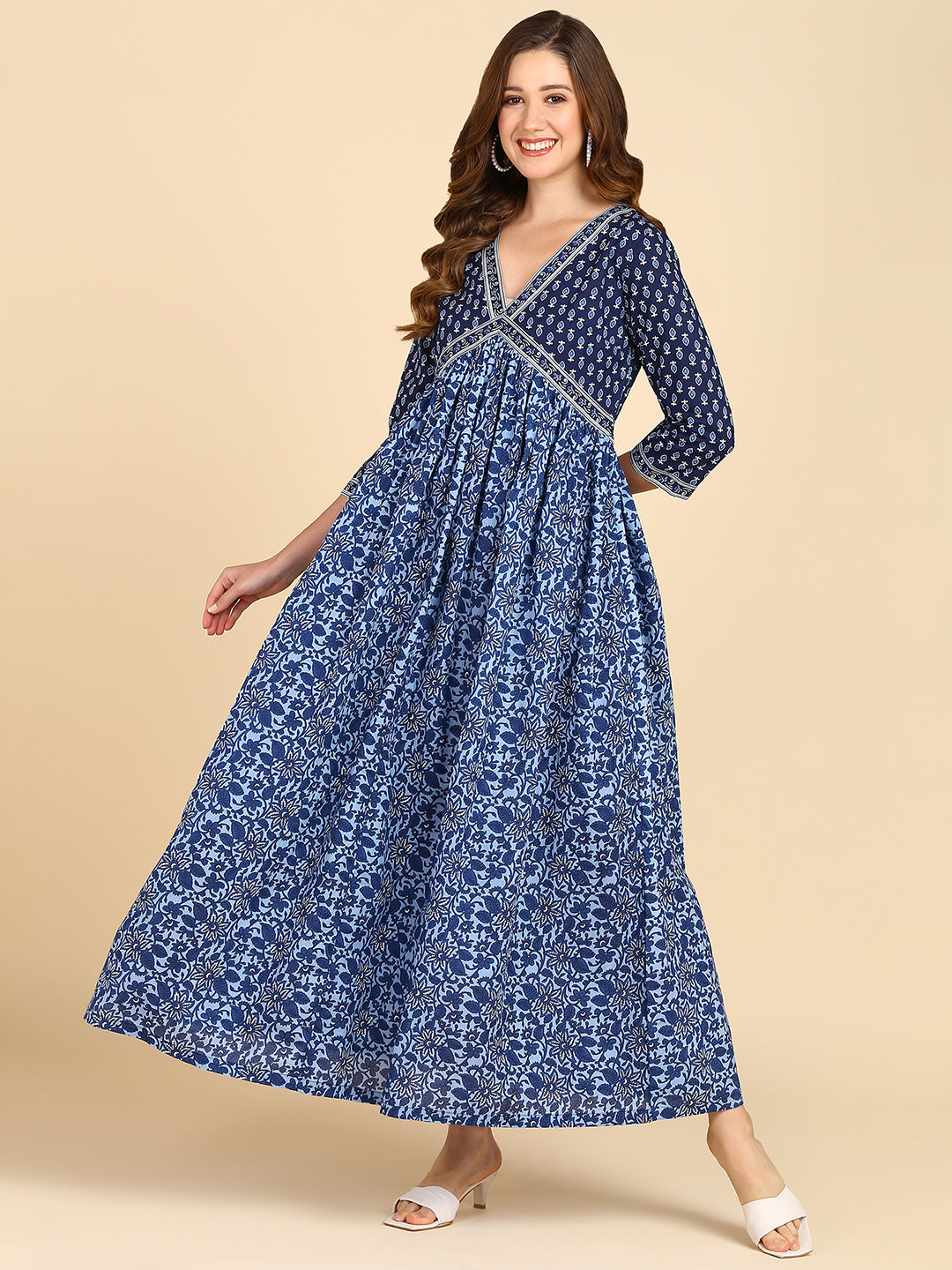 Blue Printed A-Line Maxi With Side Pocket Details (Fully Stitched)Blue Printed A-Line Maxi With Side Pocket Details (Fully Stitched)- Regular price